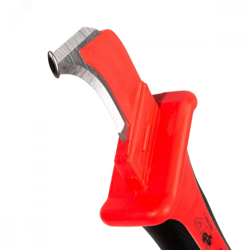 • Частично изолированное изогнутое лезвие с "пяткой" для легкого вскрытия оболочки кабеля без риска повреждения жилы