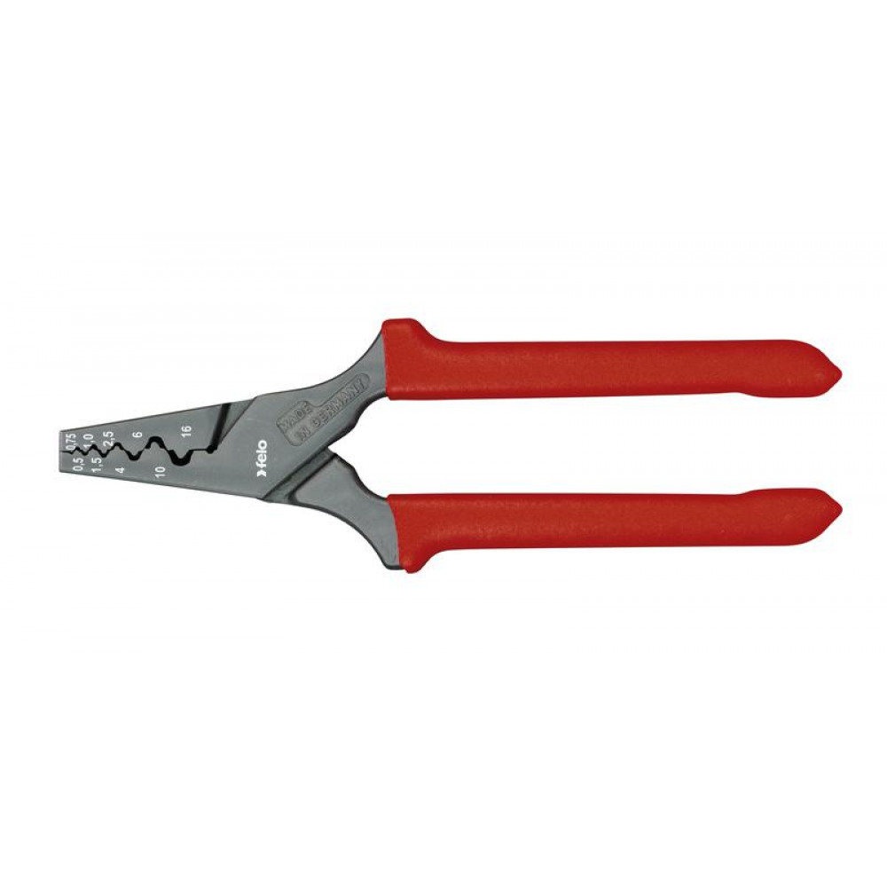 Felo Клещи для снятия изоляции 0,5 – 16 мм используется для резки провода , опрессовки наконечников 0,5-16 кв.мм, снятия оболочки с плоских проводов. Клещи оснащены удобными для удержания изделия двухкомпонентными рукоятками.