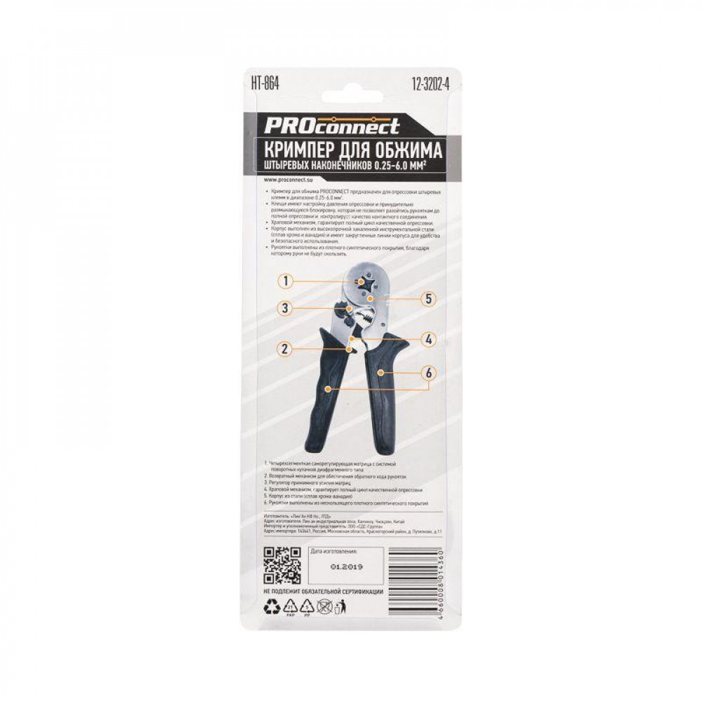 Кримпер для обжима штыревых наконечников 0.25-6.0кв.мм (HT-864) (HY-UD64) 12-3202-4, Инструмент для обжима