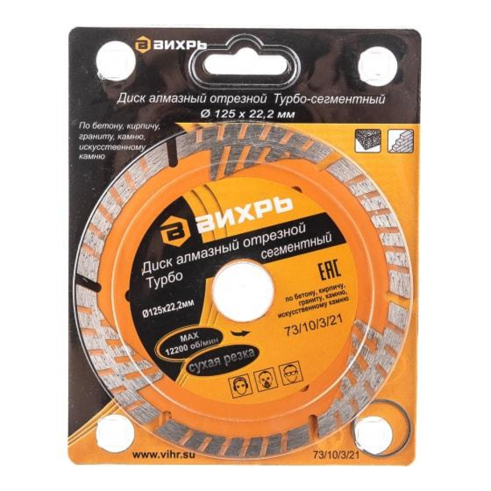 Описание Диск алмазный отрезной Турбо - сегментный 125х22.2мм сухая резка 73/10/3/21