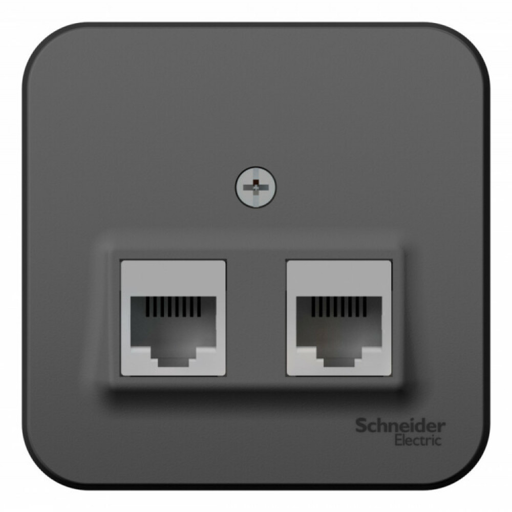 Розетка компьютерная 2-м ОП Blanca RJ45 кат.5E с изолир. пластиной антрацит SE BLNIA045456, Розетка открытого монтажа