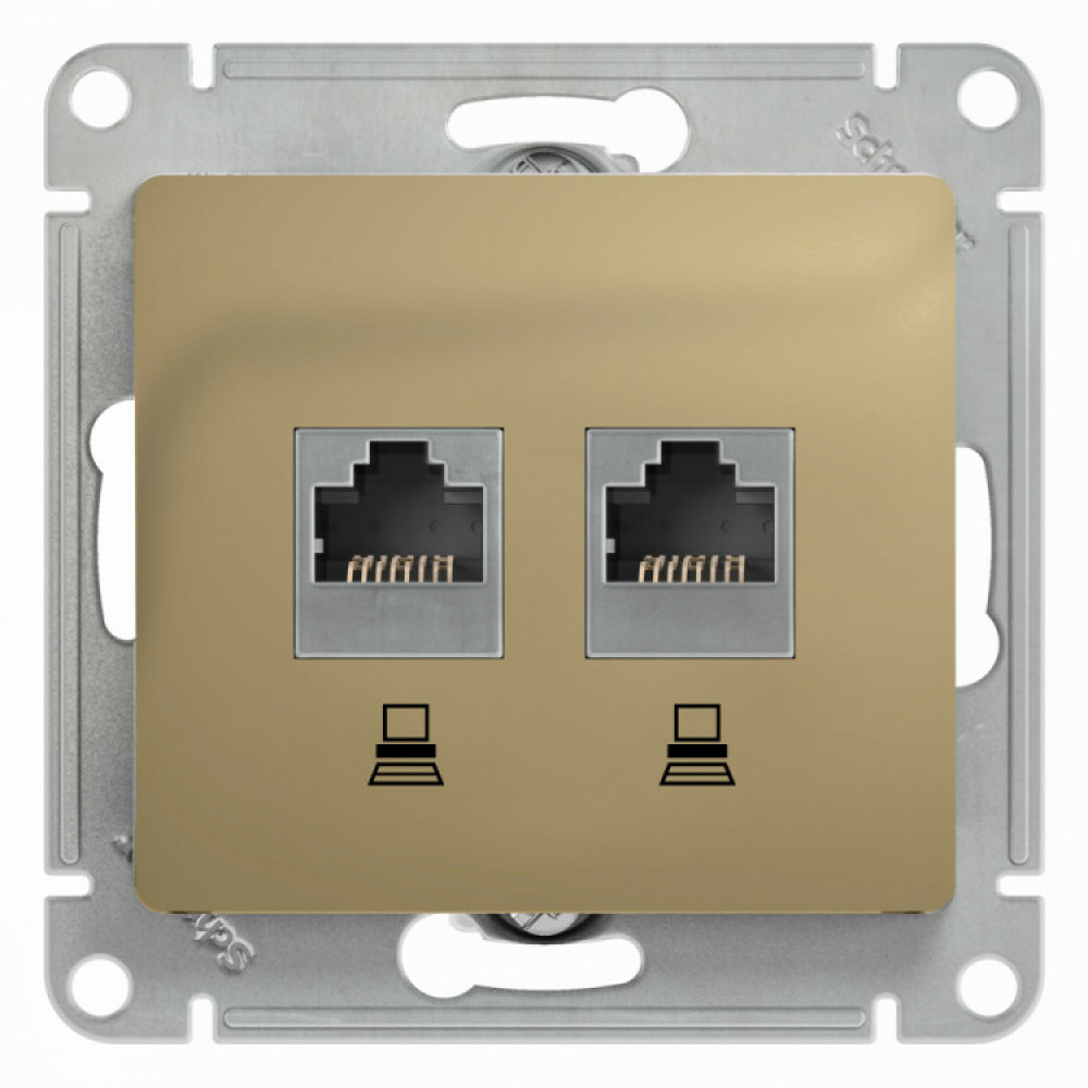 Механизм Systeme Electric (ранее Schneider Electric) серии Glossa (цвет титан) двойной розетки компьютерной с разъёмом RJ45 категория 5е предназначен для удобного и быстрого подключения вашего компьютера к компьютерной сети. Выполнен из материала PС+ASA, стойкого к УФ-излучению и появлению царапин.