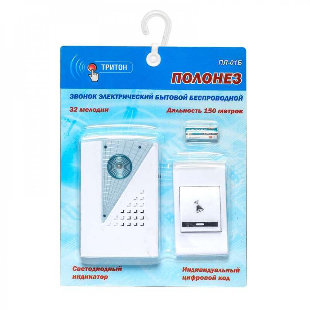 Описание Звонок беспроводной Полонез 32 мел. 150м 2ААх1.5В ПЛ-01Б