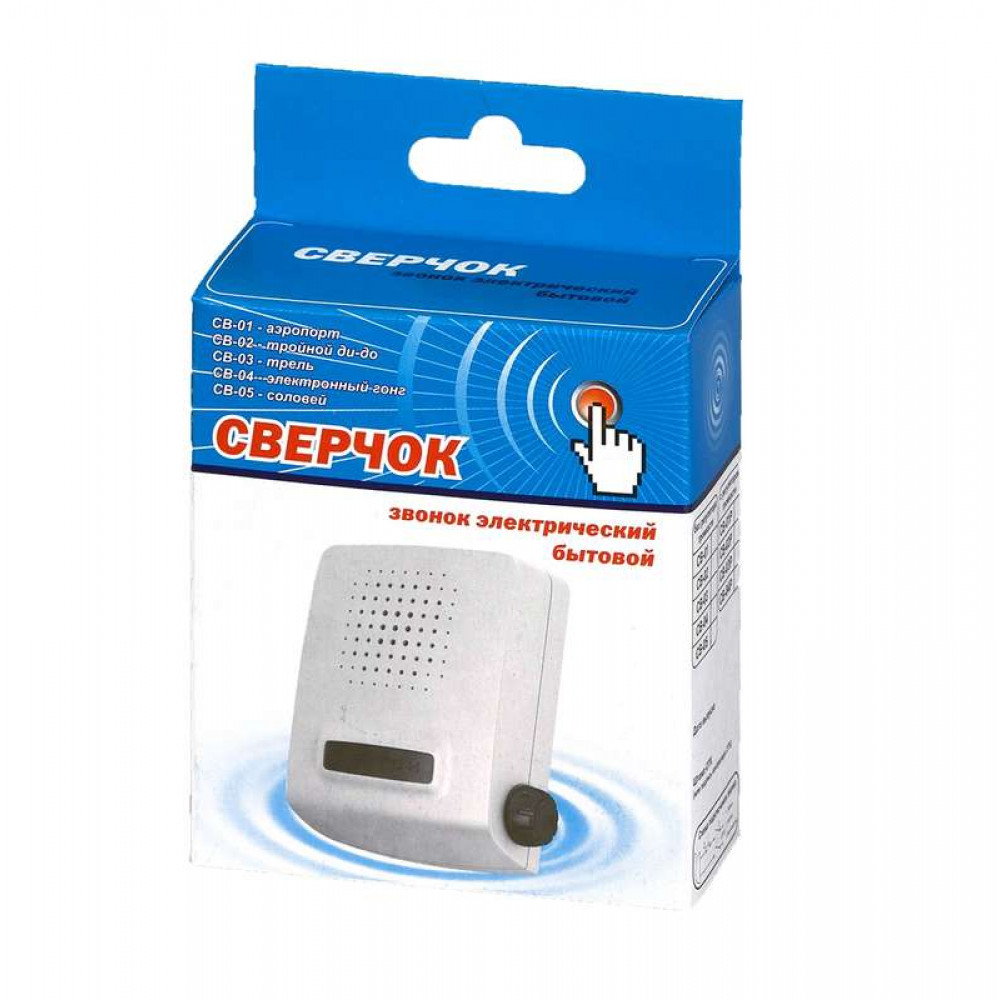 Описание Звонок проводной Сверчок аэропорт регул. громкости 220В 80-90дБА бел. СВ-01Р