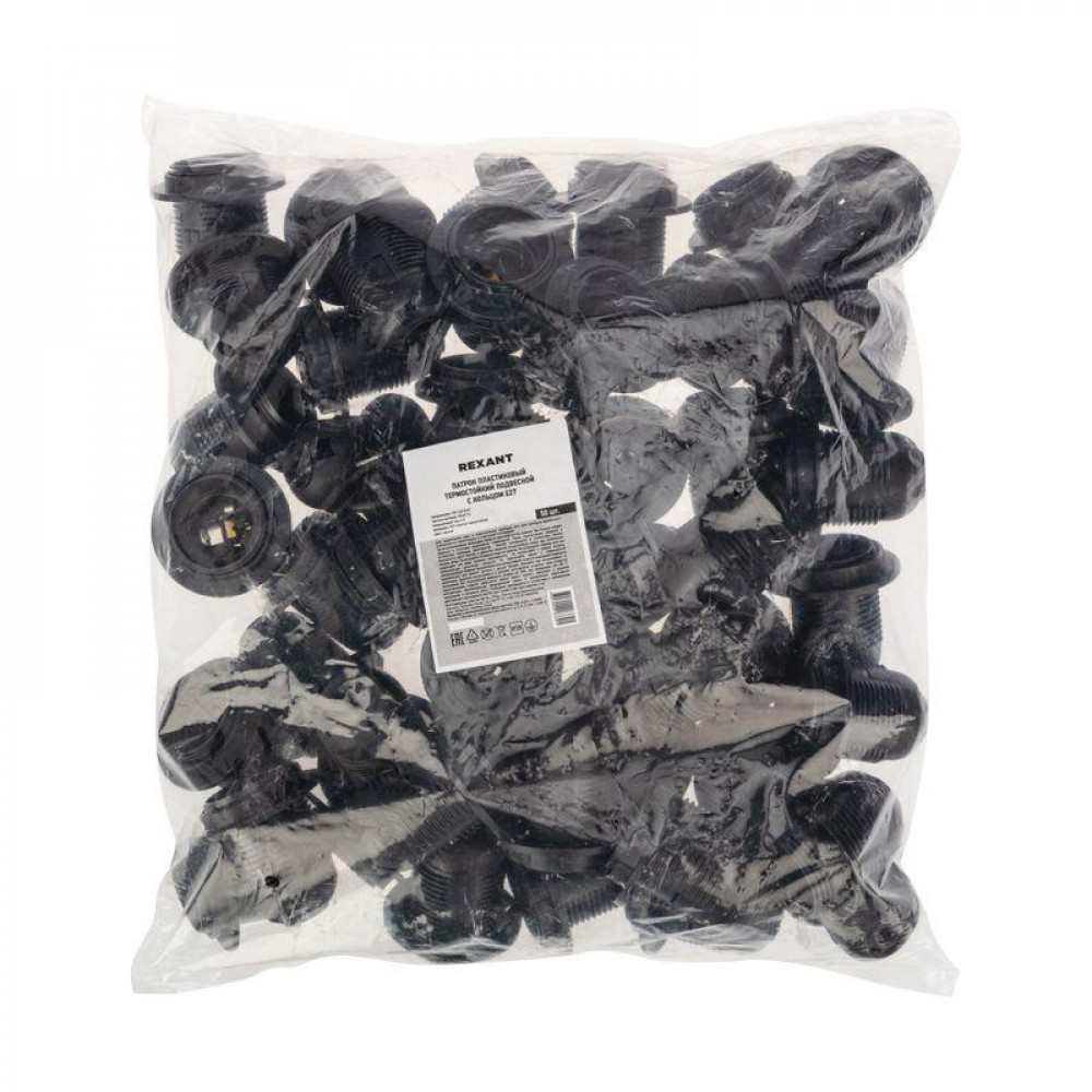 Описание Патрон пластиковый термостойкий подвесной с кольцом E27 черн. 11-8826