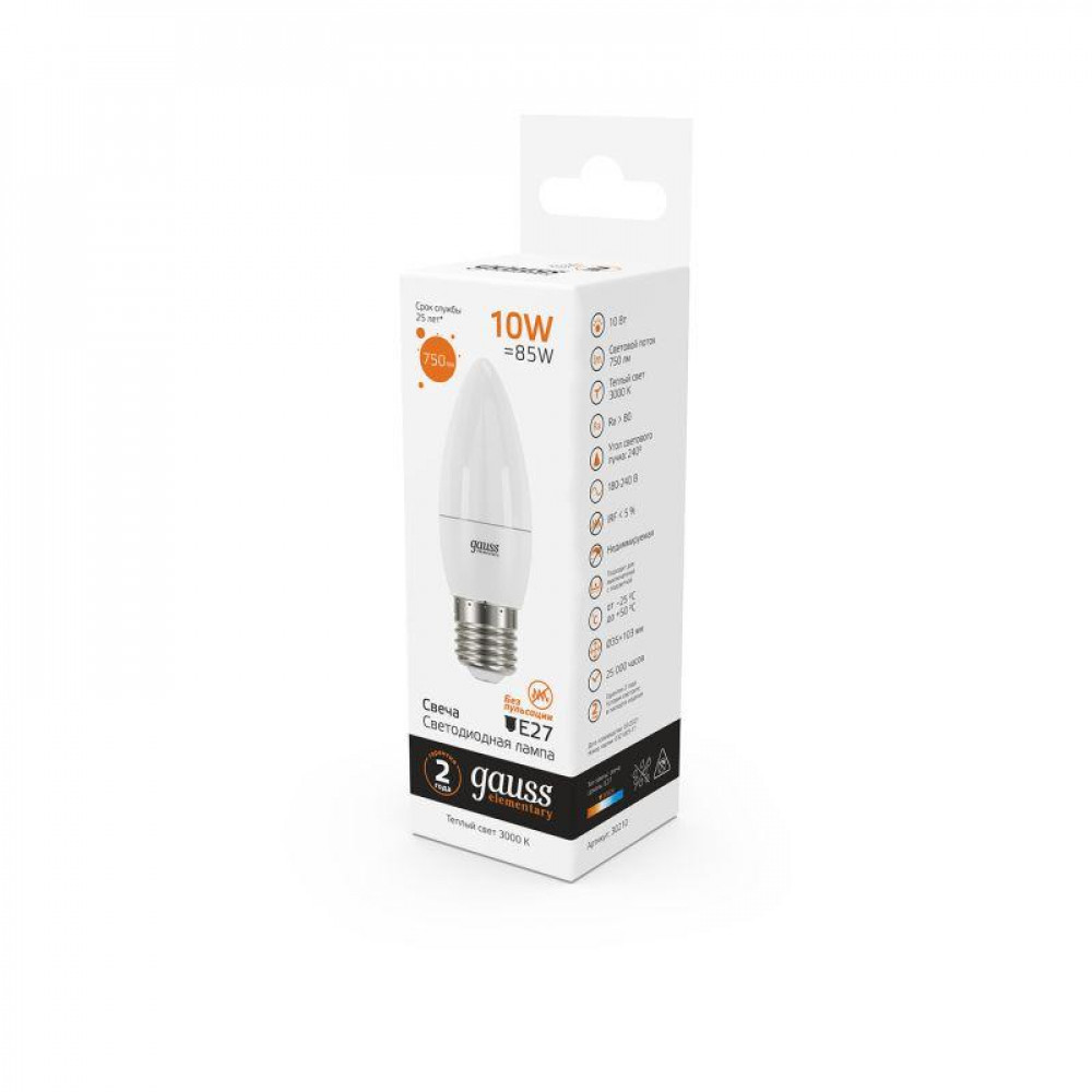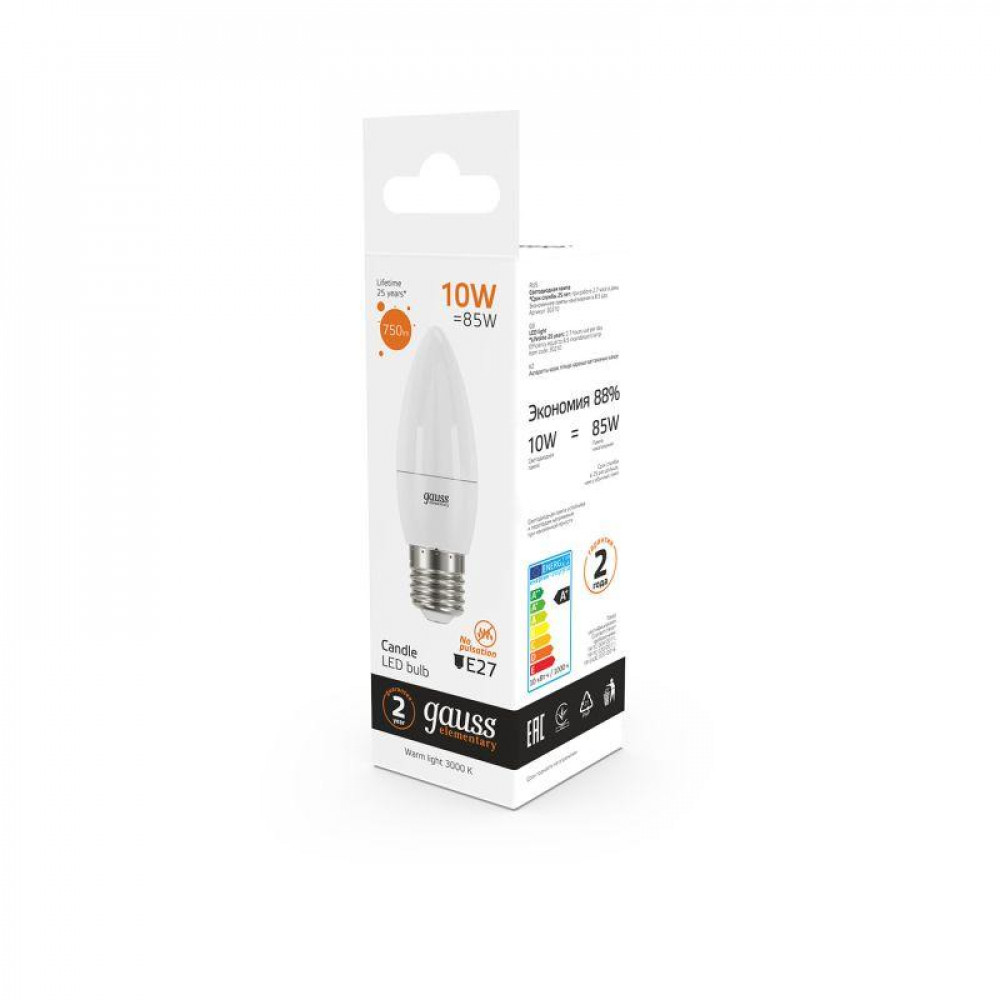 Светодиодные лампы Gauss Elementary Candle созданы в форме свечи. Лампы подойдут как для домашнего, так и для коммерческого использования. Такой тип освещения прекрасно смотрится в светильниках без плафонов или устанавливается в люстры и бра. Модель обладает широким диапазоном цветовых температур и мощностей, что поможет создать атмосферу тепла и уюта или концентрации. Равномерный спектр света создает зрительный комфорт в любом помещении. Данный тип освещения от Gauss обеспечивают стабильную работу в течение всего срока службы.