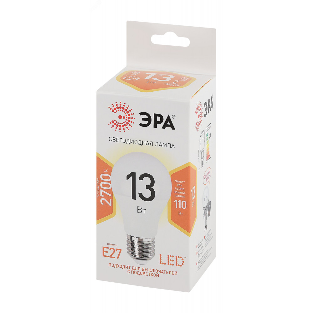Описание Лампа светодиодная A60-13W-827-E27 грушевидная 1040лм Б0020536