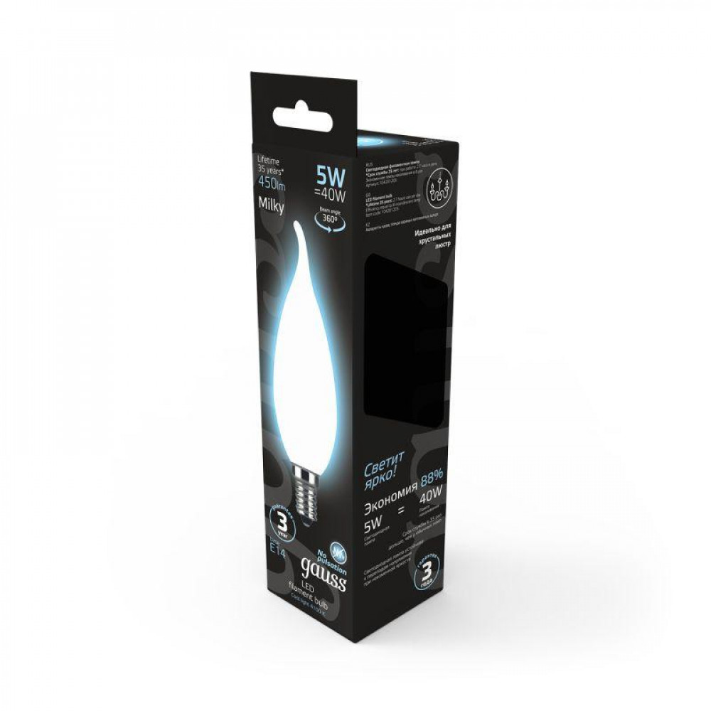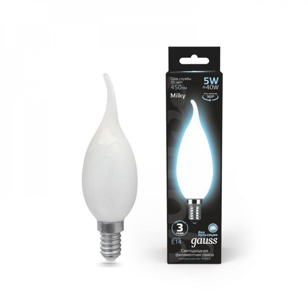 Описание Лампа светодиодная филаментная Black Filament 5Вт свеча на ветру матовая 4100К нейтр. бел. E14 450лм 104201205