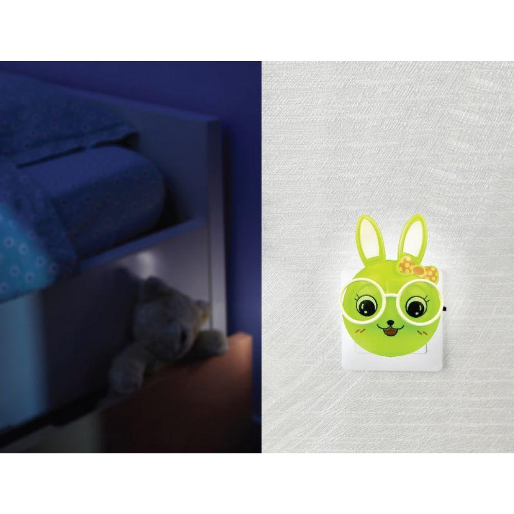 Светильник светодиодный NL-241 "Зайцы очкарики" 220В ночник с выкл. зел. 13816