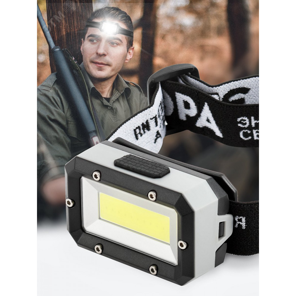 ЭРА GB-708 Шторм компактный налобный фонарь с 4 режимами работы. Налобник оснащён COB-матрицей, которая создаёт свет дальностью 10 метров. LED-элемент не перегорает и не требует замены в течение всего срока эксплуатации. Прочный корпус защищён от механических воздействий. Для работы устройства требуются три мизинчиковые батарейки, которых хватает на 3,5 часа свечения при непрерывной работе фонаря. В зависимости от ситуации использования можно выбирать любой из четырёх доступных режимов свет повышенной яркости, освещение средней яркости, стробирование, аварийное мигание для нештатных случаев. Адаптивный угол наклона гарантирует максимальный комфорт при эксплуатации данного светодиодного фонаря.