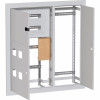Сварной металлический корпус состоит из трех отсеков: вводно-учетного, распределительного, отсека слаботочного оборудования. В вводно-учетном и распределительном отсеках размещены DIN-рейки для крепления счетчиков (по количеству квартир). В распределительном отсеке установлены DIN-рейки для аппаратов групповых линий и рейка для установки шин N и РЕ. Отсек укомплектован оперативной панелью. Отсек слаботочного оборудования снабжен перфорированными профилями для прокладки теле- и радиосетей, телефонных линий, сетей охранной сигнализации, домофонов и т.п. Для обеспечения пожарной безопасности между слаботочным и силовым отсеками расположена разделительная перегородка.