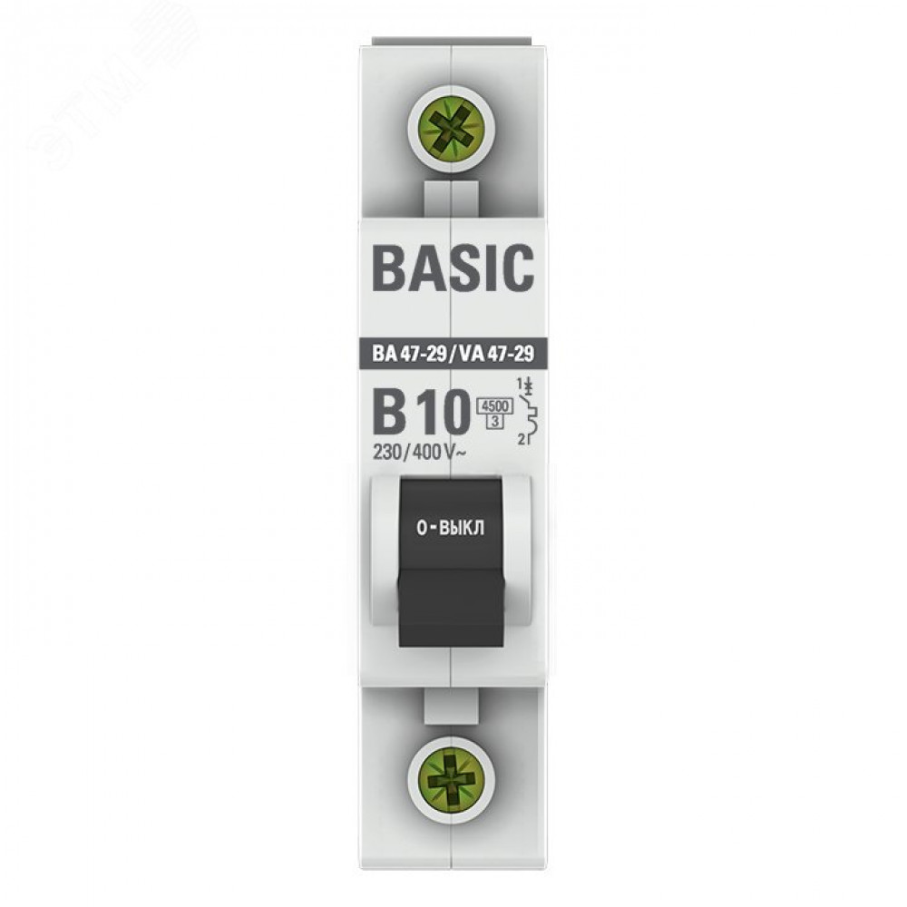 Выключатель автоматический модульный 1п B 10А 4.5кА ВА 47-29 Basic EKF mcb4729-1-10-B, Выключатель автоматический модульный