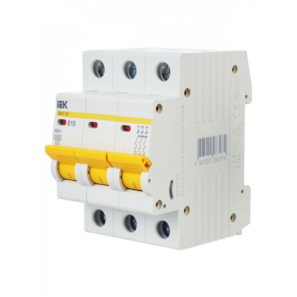 Выключатель автоматический модульный 3п B 10А 4.5кА ВА47-29 KARAT IEK MVA20-3-010-B, Выключатель автоматический модульный
