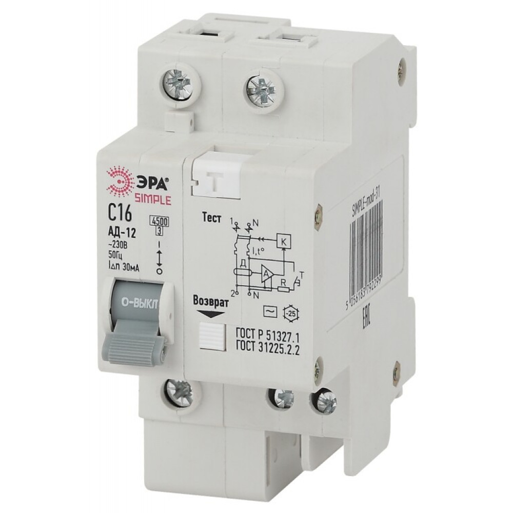 Доставка Выключатель автоматический дифференциального тока 2п (1P+N) C 16А 30мА тип AC SIMPLE-mod-29 Б0039287