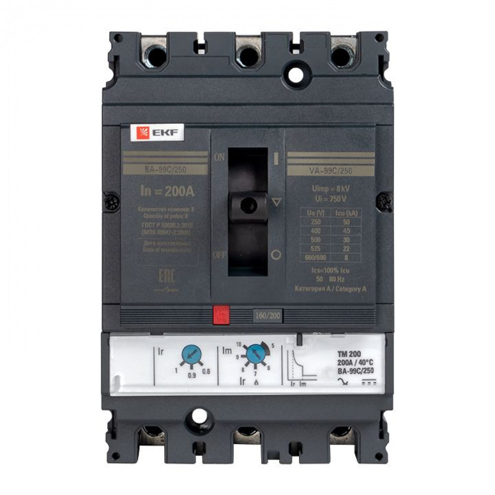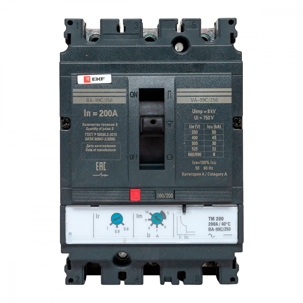 Выключатель автоматический 3п 250/200А 45кА ВА-99C Compact NS PROxima mccb99C-250-200, Выключатель автоматический силовой