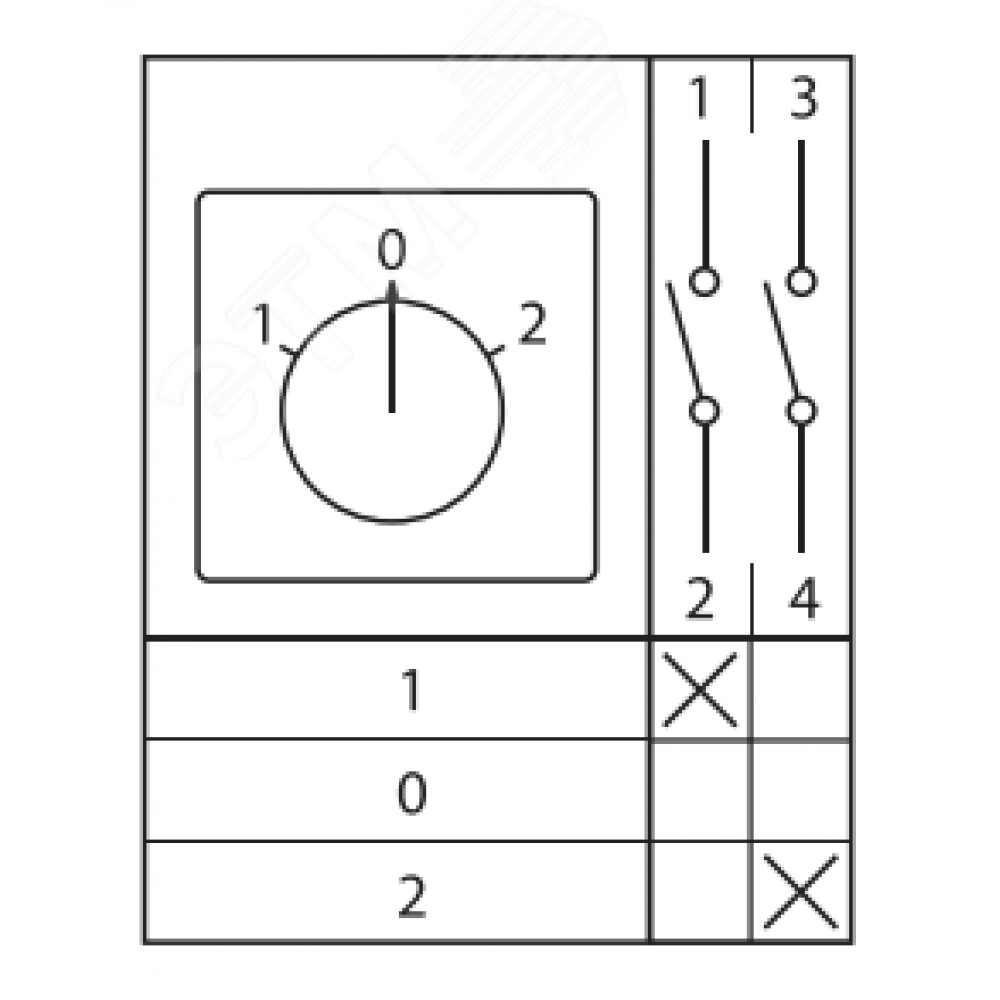Описание Переключатель кулачковый ПК-1-21 1П 10А "1-0-2" pk-1-21-10