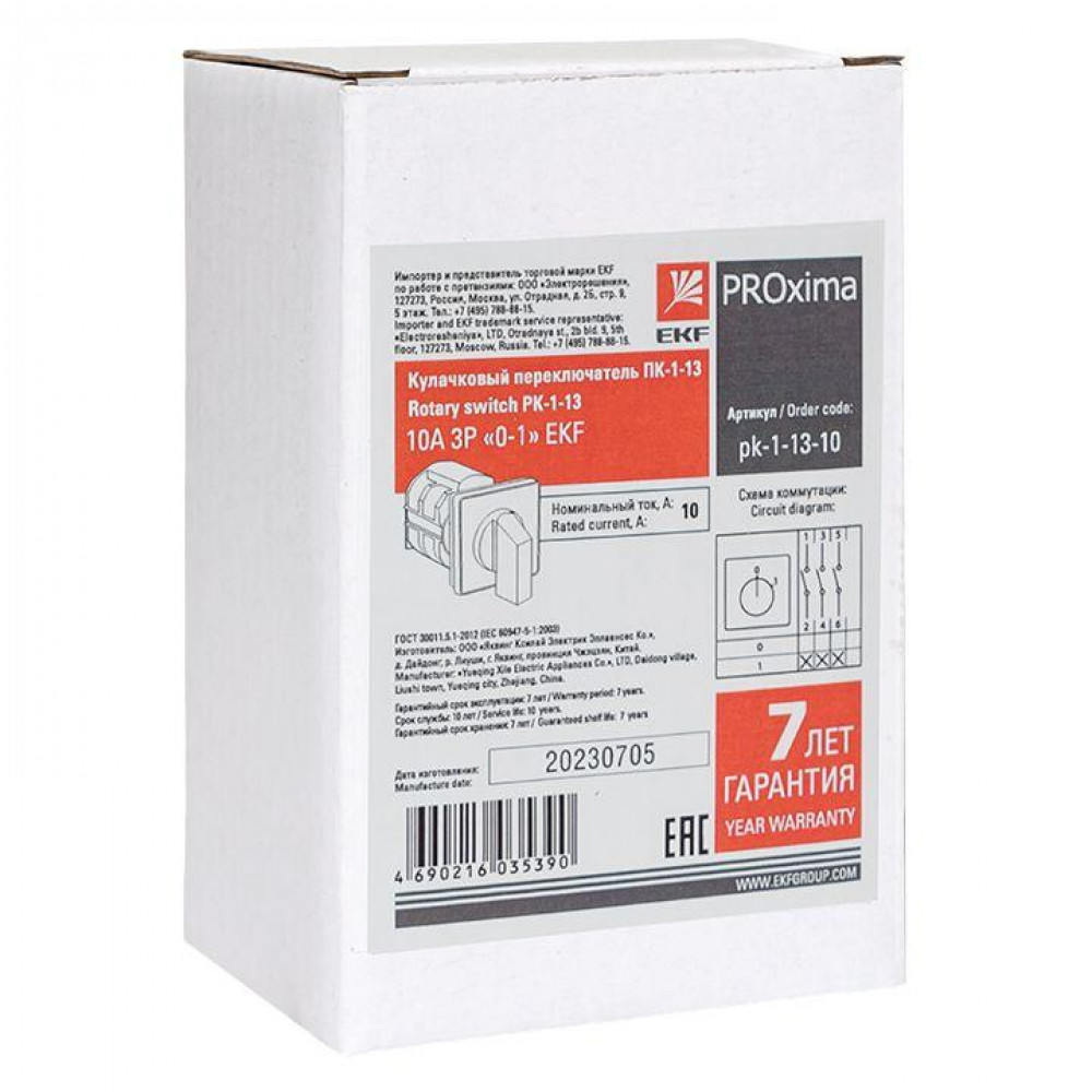 Описание Переключатель кулачковый ПК-1-13 3П 10А "0-1" pk-1-13-10
