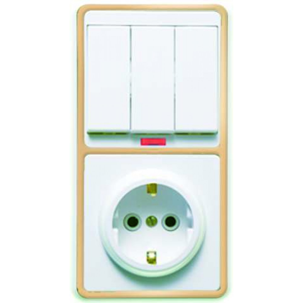 Блок БКВР-054 Бэлла (3-кл. выкл. с подсветкой + розетка с заземл.) зол. Кунцево 5846, Блок совмещенный открытого монтажа