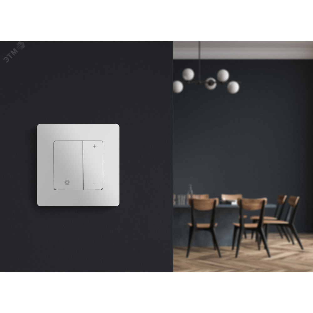Клавишный светорегулятор Legrand Etika для скрытого монтажа. Позволяет регулировать яркость ламп. Экономит электроэнергию. Благодаря функции плавного включения существенно продлевает срок службы ламп. Встроенная память позволяет одним нажатием выводить яркость на комфортный уровень. Предусмотрен режим с фиксированными уровнями яркости (33-66-100%). Электронная защита от перегрузки и короткого замыкания. Особенности - Светорегулятор универсальный. Подходит для управления лампами - Накаливания и галогенными в диапазоне 3-400Вт, Диммируемыми светодиодными в диапазоне - 3-75 Вт (не более 10 шт.). Запоминание последнего уровня яркости, Режим с фиксированными уровнями яркости (33-66-100%), Режим плавного отключения в течение часа, Защита от перегрузки и короткого замыкания. Двухпроводное подключение (в разрыв фазного проводника). Устанавливается в стандартную монтажную коробку. Возможно внешнее управление (линия до 50 метров), кнопками без подсветки с Н/О контактом.