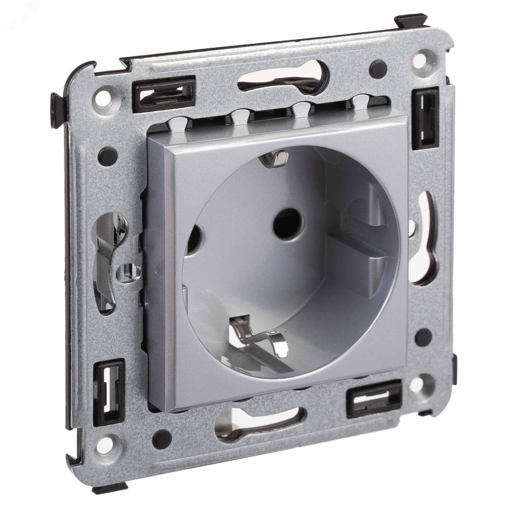 Розетка 1-м СП 2мод. Avanti "Закаленная сталь" 16А 2P+E защ. шторки сер. 4404003, Розетка скрытого монтажа