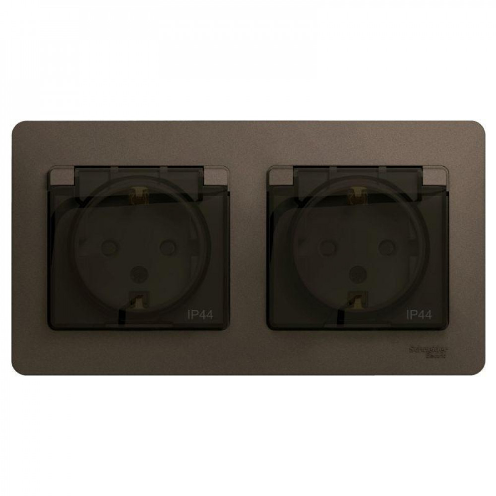 Розетка 2-м СП 2мод. Glossa 16А IP44 с заземл. защ. шторки в сборе шоколад SE GSL000847, Розетка скрытого монтажа