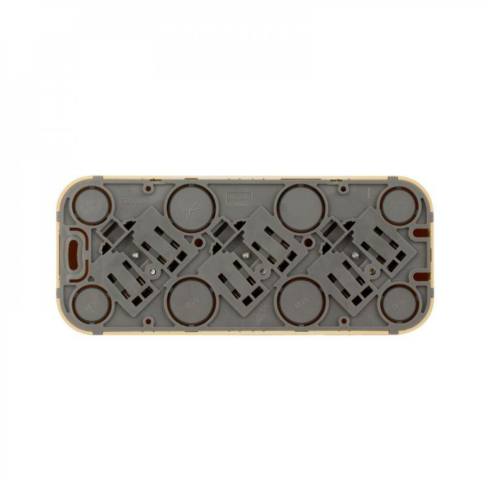 Розетка 3-м ОП Quteo 16А IP20 250В 3х2P+E с заземл. защ. шторки дерево Leg 782288, Розетка открытого монтажа
