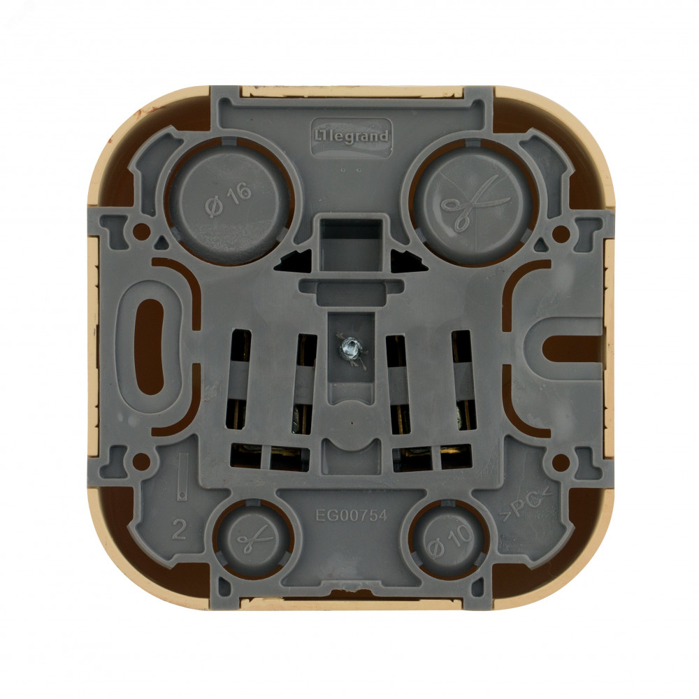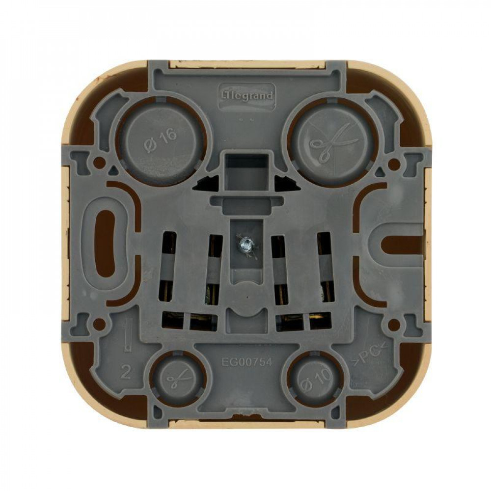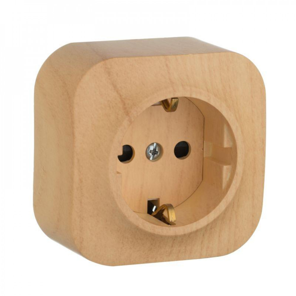 Розетка 1-м ОП Quteo 16А IP20 250В 2P+E с заземл. защ. шторки дерево Leg 782280, Розетка открытого монтажа