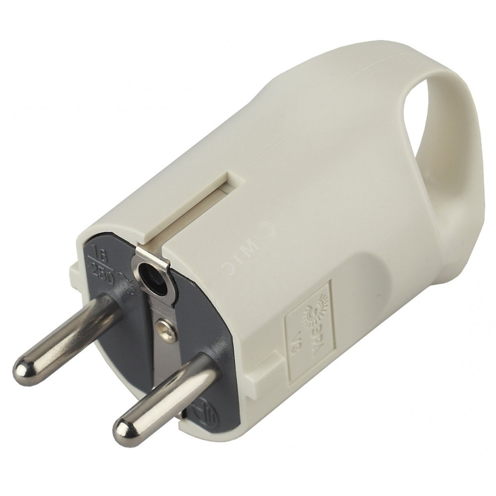 Вилка штепсельная ЭРА, с заземлением, максимальная мощность - 16 A/3500 В (кабель до 3x1.5мм2), поликарбонат