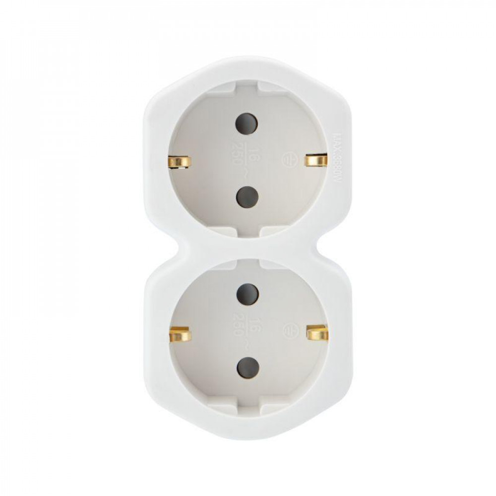 Электрический двойник REXANT предназначен для одновременного подключения к электрическим сетям с напряжением 220 В сразу два прибора.