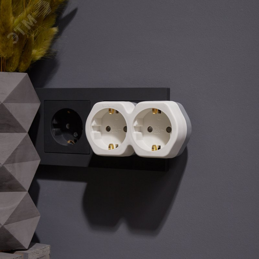 Описание Разветвитель 2-м с заземл. 16А IP20 защ. шторки бел. 11-1087