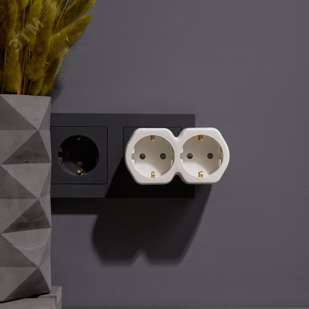 Двойник можно использовать в помещениях, где могут находиться маленькие дети, так как шторки надежно блокируют доступ к контактам розетки других мелких предметов: спиц, карандашей, бусин и др.