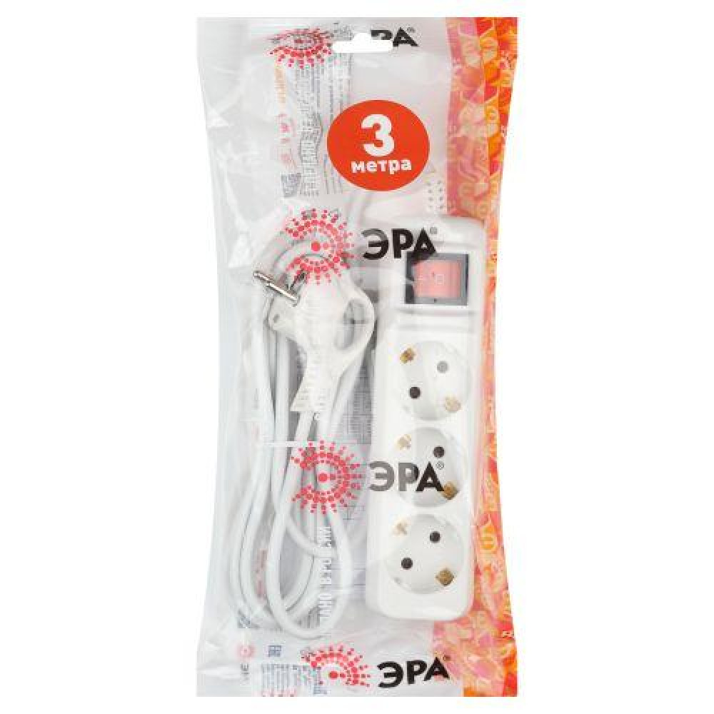 Удлинитель электрический Эра UX-3es-3m с заземлением, с выключателем, ПВС, 3x0,75мм2, 3 розетки, 3 м. Рассчитан на максимальную мощность 10А/2200 Вт. Удлинитель Эра станет Вашим надежным помощником, если Ваши любимые электроприборы находятся далеко от розеток. Провод в удлинителях Эра сделан из 100% меди, что делает его абсолютно пожаробезопасным. Корпус выполнен из ударопрочного и негорючего пластика (полипропилен). Вилка обеспечена кольцом для удобного извлечения ее из розетки. Модель удлинителя на 10А позволяет подключить бытовые приборы общей нагрузкой до 2200Вт. Дизайн удлинителя разработан в России командой Эра Style.