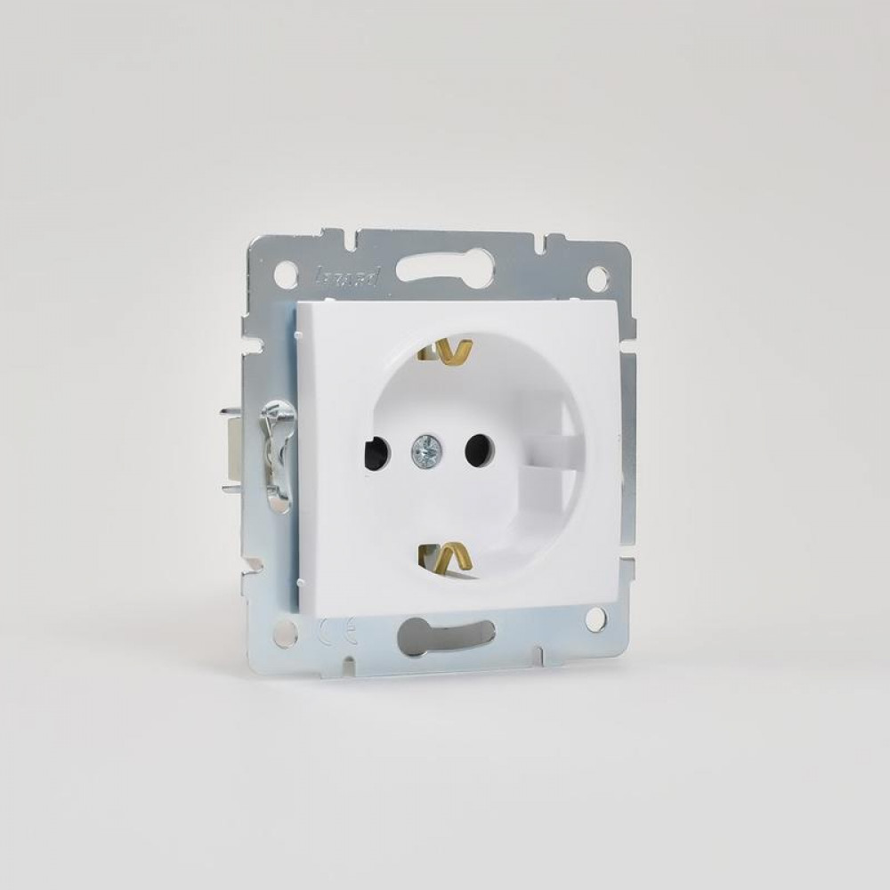 Розетка 1-м СП Karina с заземл. защ. шторки термопласт механизм бел. 707-0288-124B, Розетка скрытого монтажа