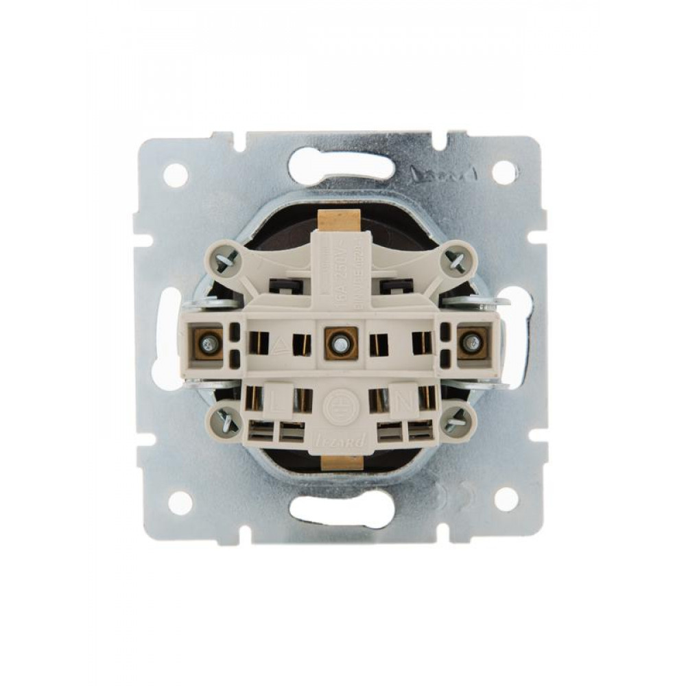 ← Розетка 1-м СП Karina с заземл. защ. шторки термопласт механизм бел. 707-0288-124B
