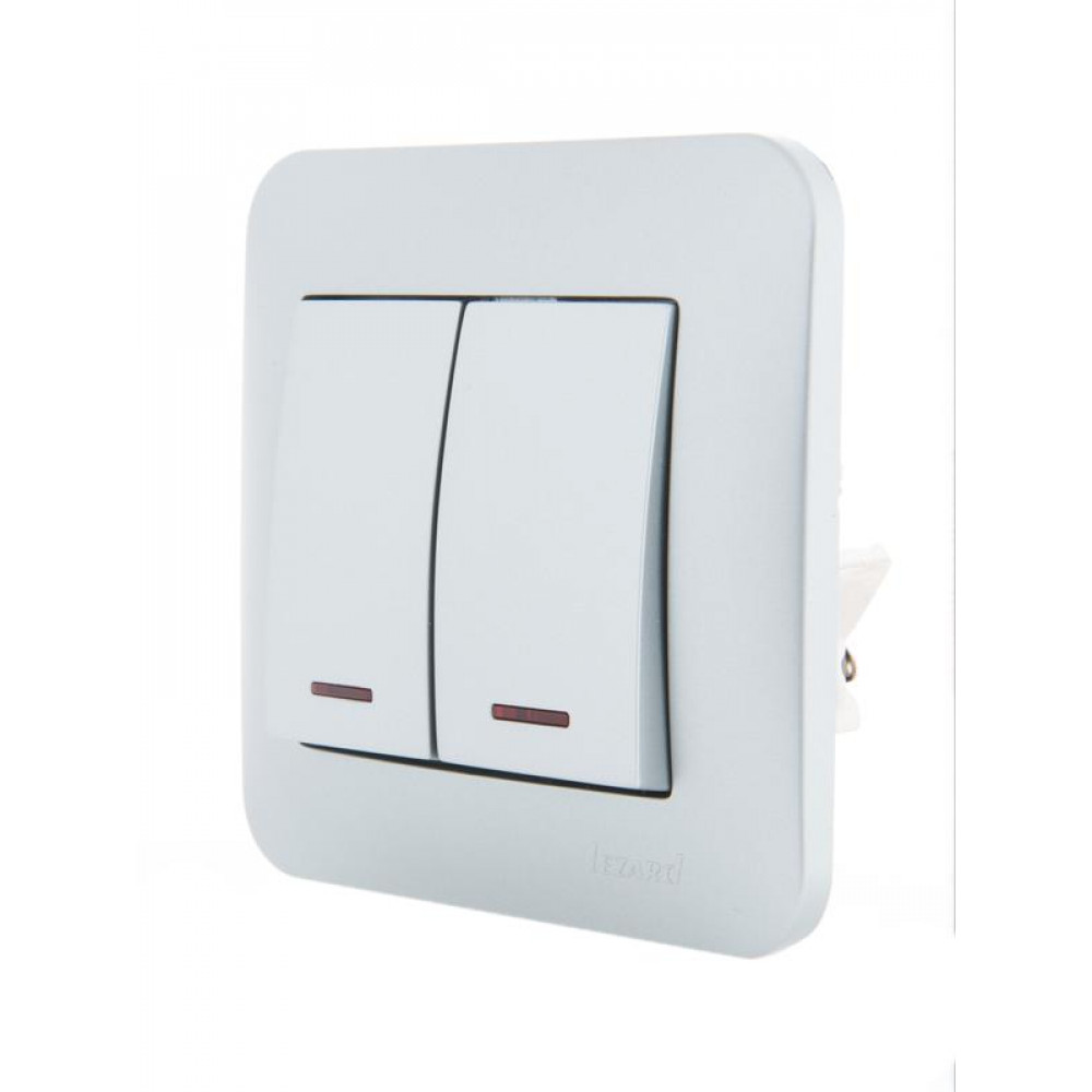 Описание Выключатель 2-кл. 1п СП Karina 10А IP20 с подсветкой механизм матов. серебр. 707-4388-112
