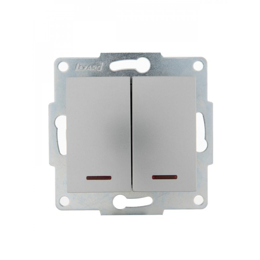 Выключатель 2-кл. 1п СП Karina 10А IP20 с подсветкой механизм матов. серебр. 707-4388-112, Выключатель и переключатель скрытого монтажа