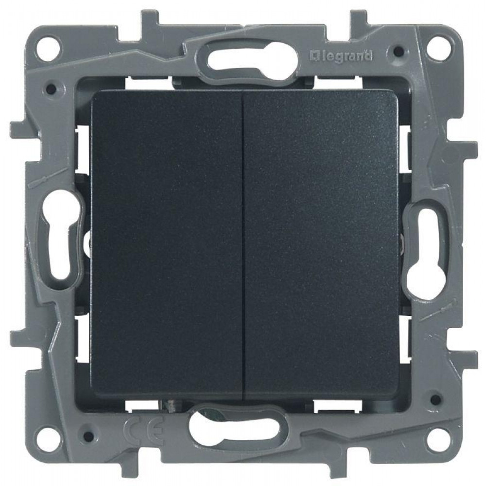 Переключатель 2-кл. СП Etika Plus 10А IP20 250В 10AX безвинтов. зажимы механизм антрацит Leg 672612, Выключатель и переключатель скрытого монтажа