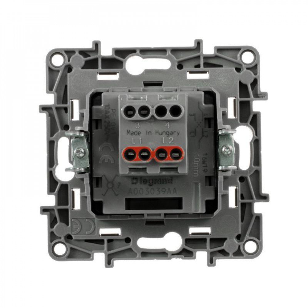 Описание Переключатель перекрестный 1-кл. СП Etika 10А IP20 250В 10AX винтов. клеммы механизм алюм. Leg 672409