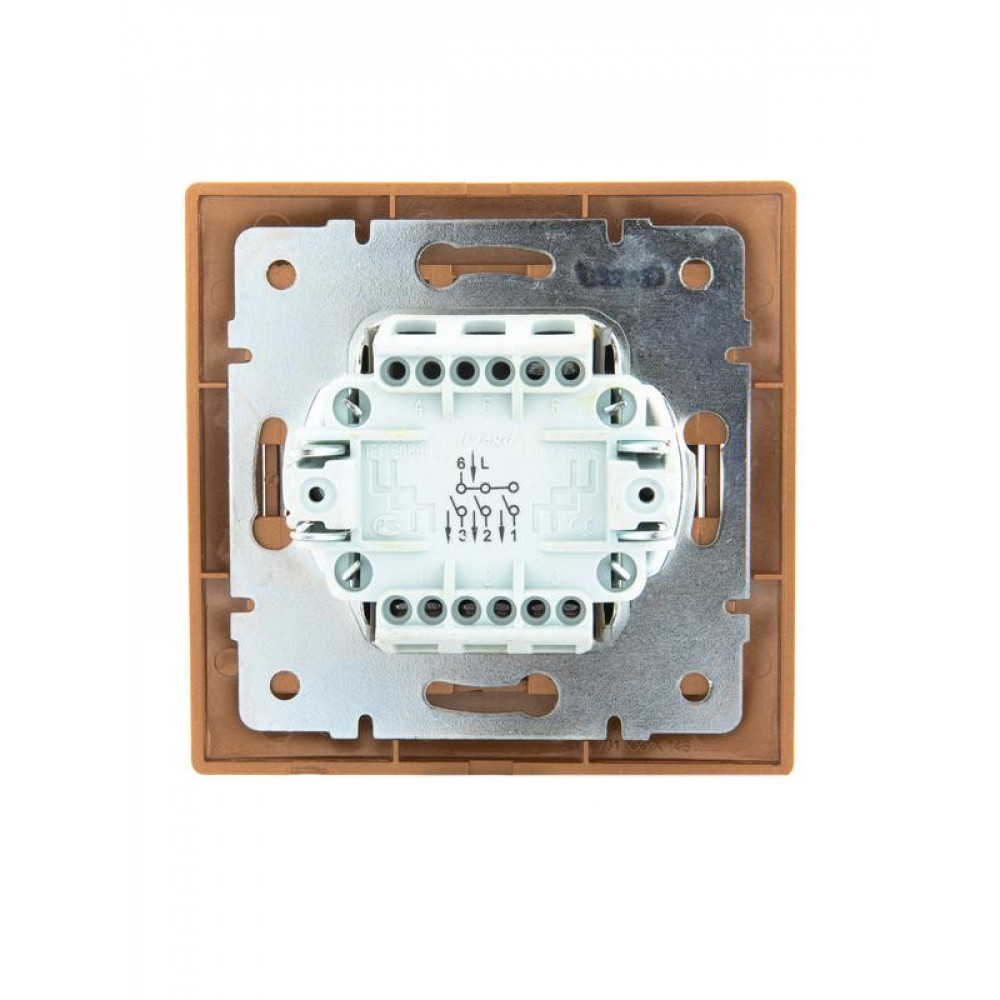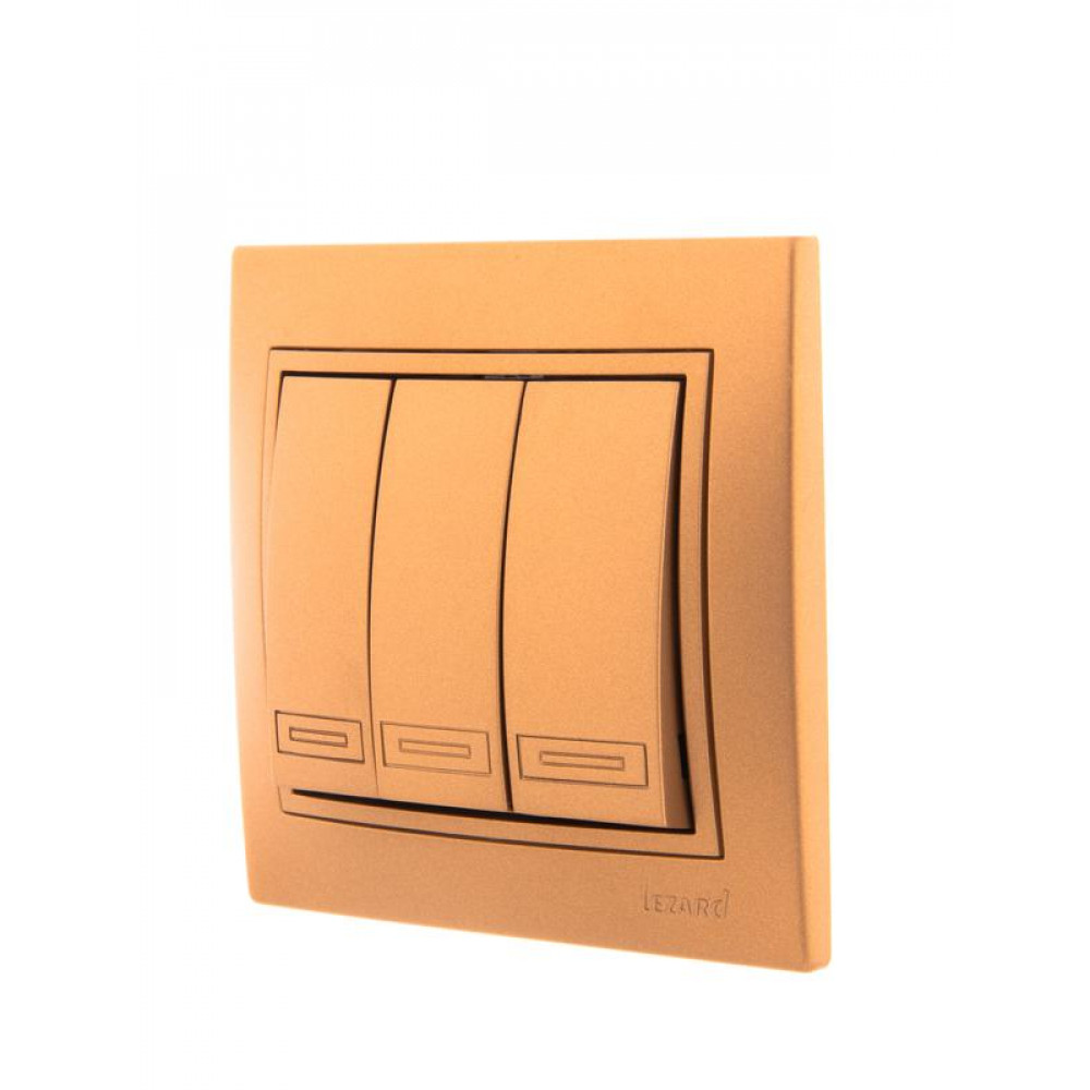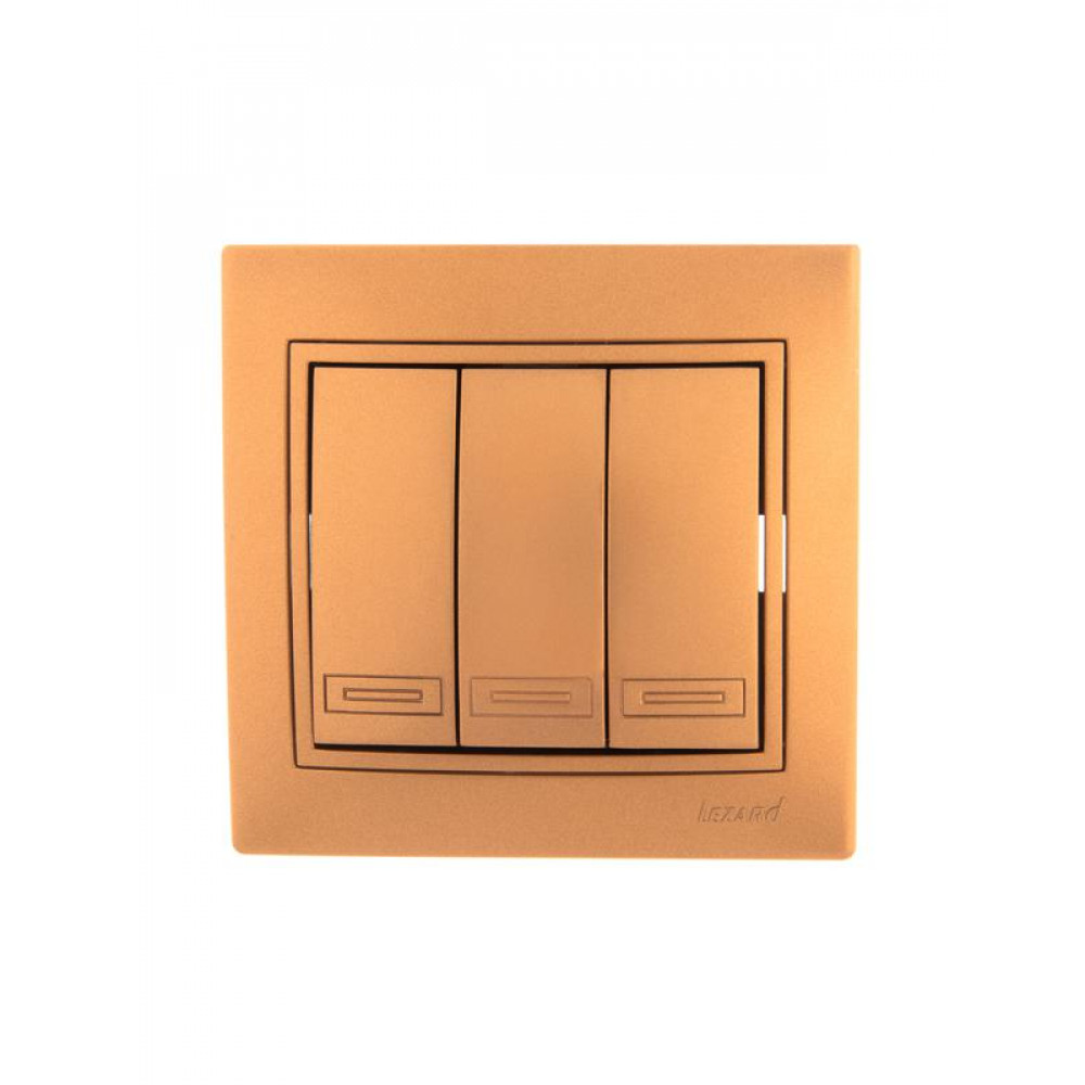 Описание Выключатель 3-кл. СП Mira 10А IP20 со вставкой зол. метал. 701-1313-109