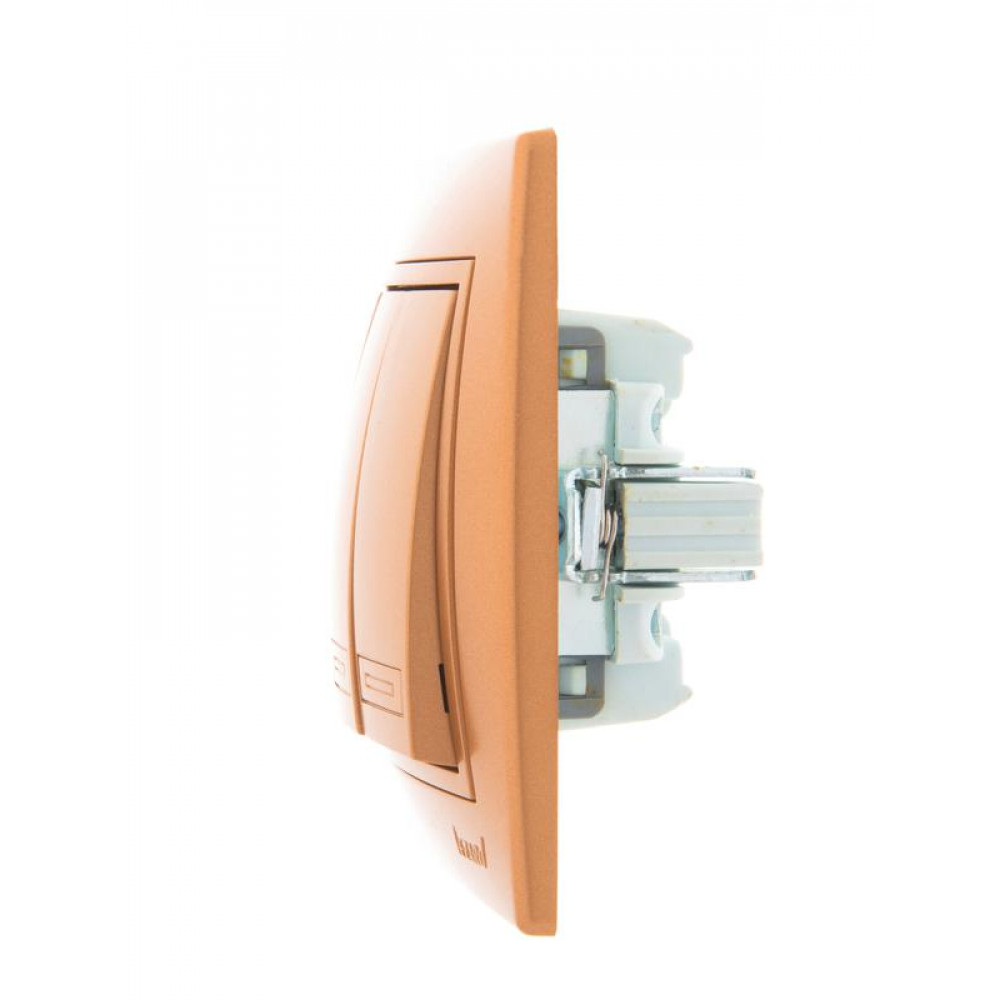 Выключатель 3-кл. СП Mira 10А IP20 со вставкой зол. метал. 701-1313-109, Выключатель и переключатель скрытого монтажа