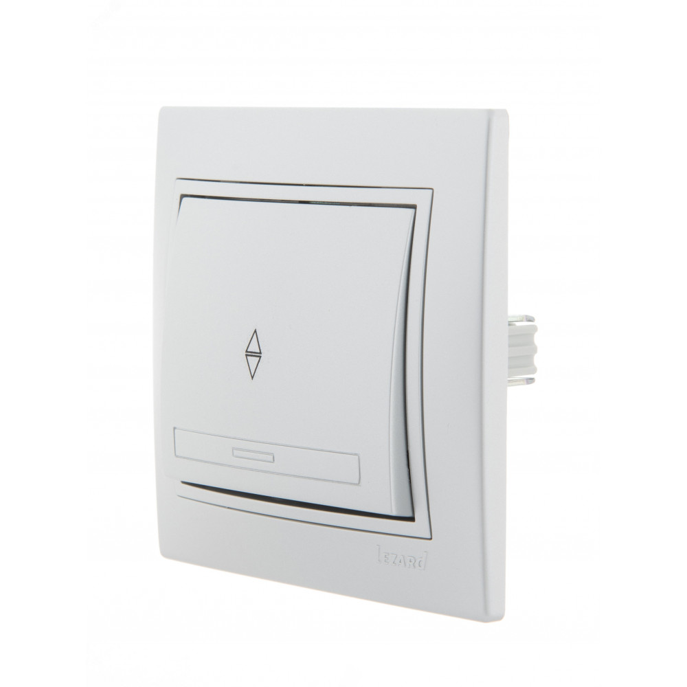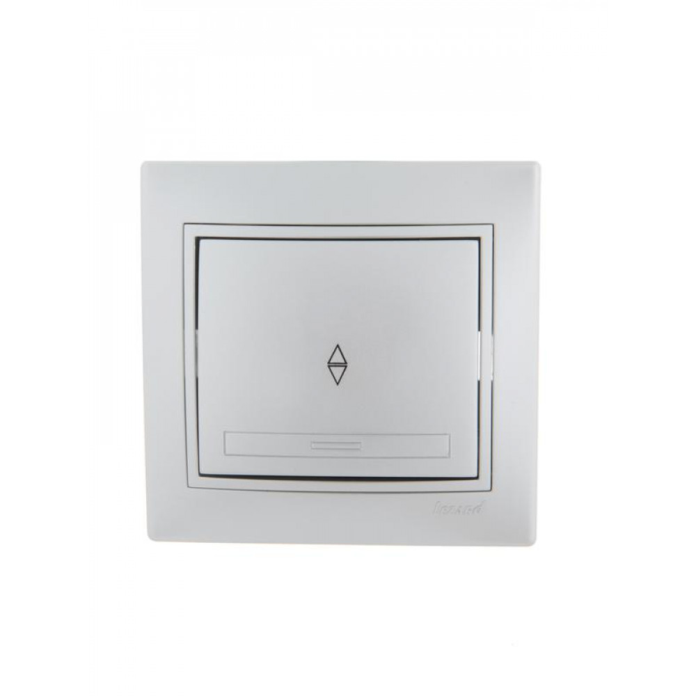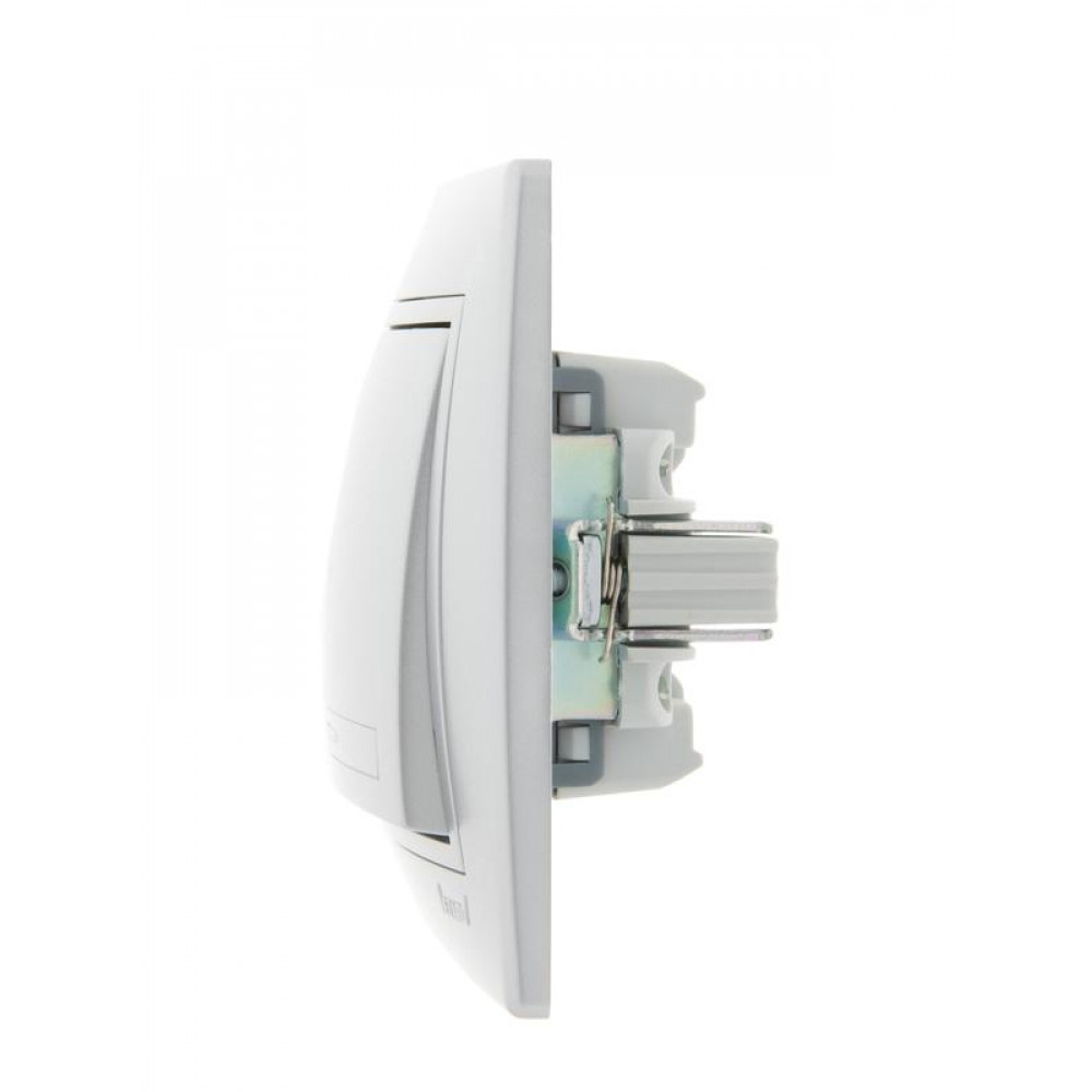 Описание Переключатель проходной 1-кл. СП Mira 10А IP20 со вставкой сер. метал. 701-1010-105