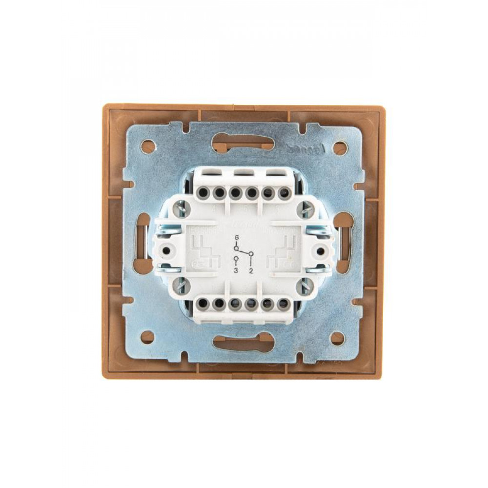 Переключатель проходной 1-кл. СП Mira 10А IP20 со вставкой зол. метал. 701-1313-105, Выключатель и переключатель скрытого монтажа