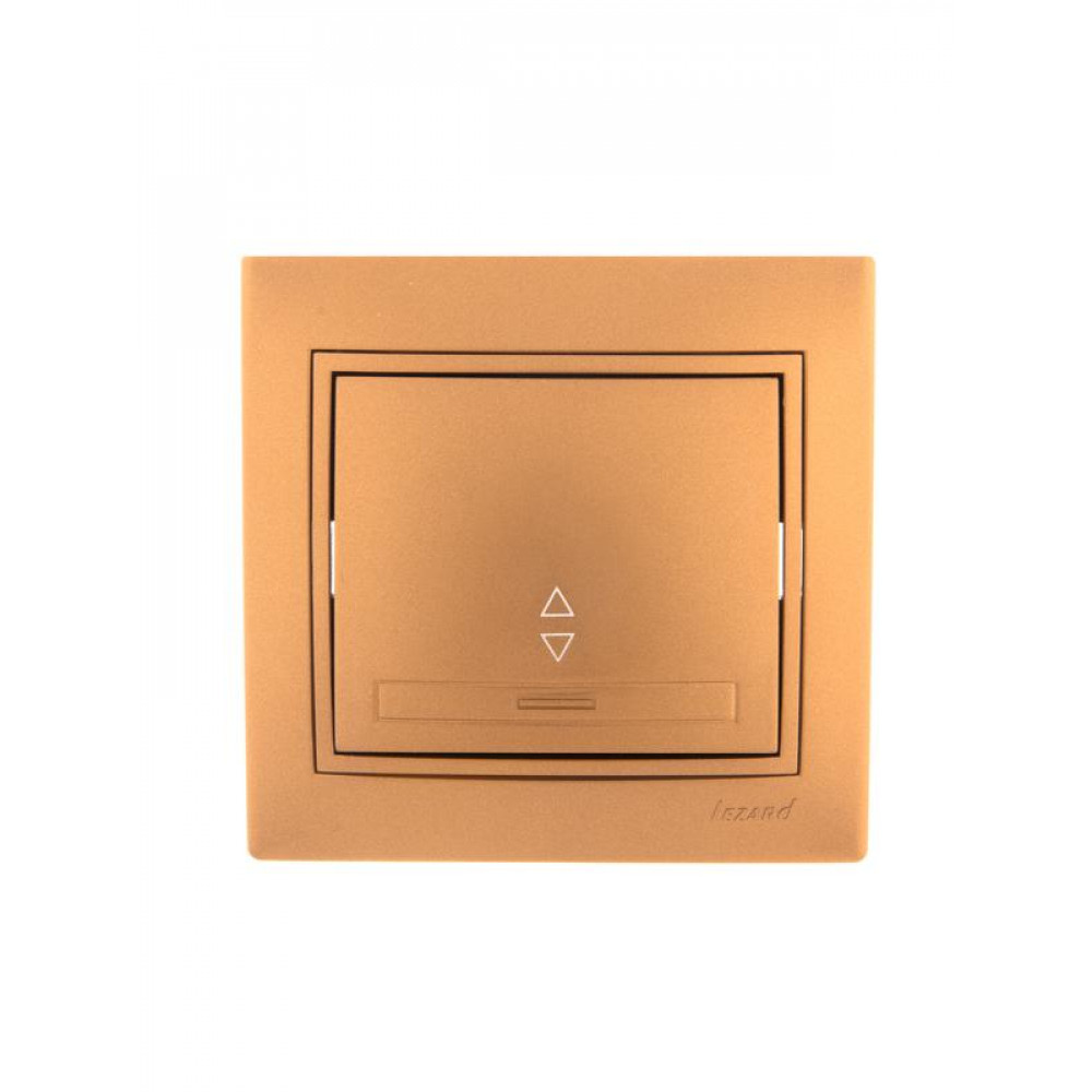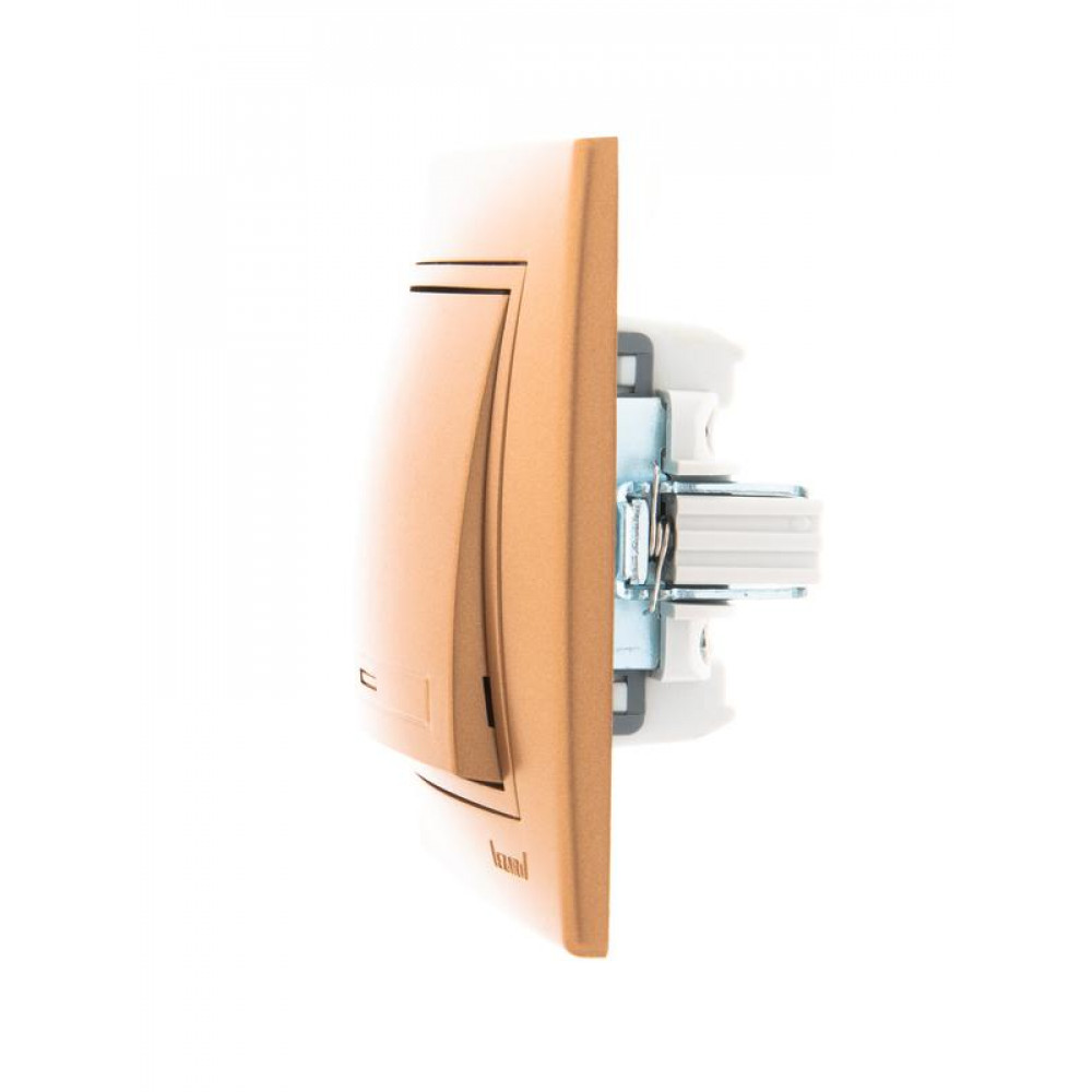 Описание Переключатель проходной 1-кл. СП Mira 10А IP20 со вставкой зол. метал. 701-1313-105