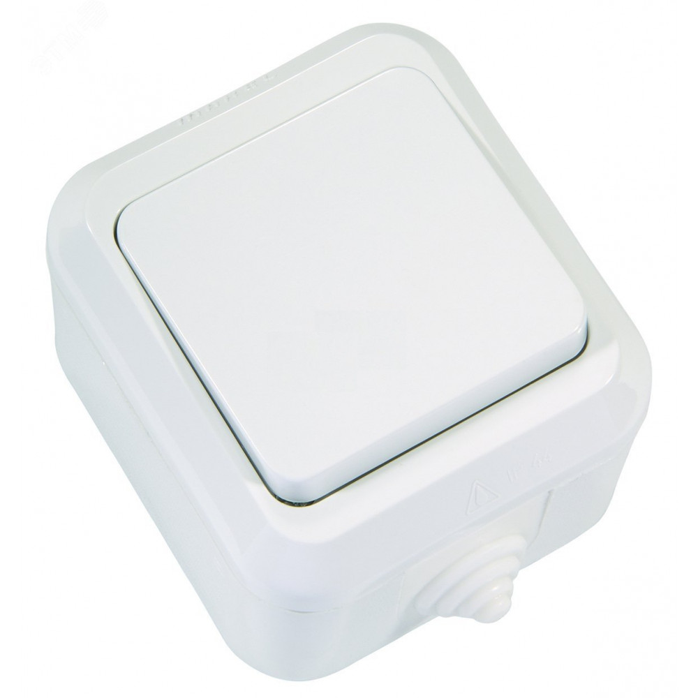 Переключатель проходной 1-кл. ОП 10А IP44 п/герм. бел. 18303, Выключатель и переключатель открытого монтажа