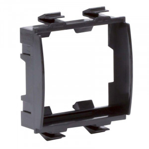 Каркас на 2 модуля для монтажа электроустановочных изделий "Viva". Назначение: монтаж электроустановочных изделий в пластиковые короба "In-liner Front", напольную башенку BUS, алюминиевые короба и колонны "In-liner Aero". Характеристики: материал – АБС-пластик; с двух внешних сторон расположены замки, предназначенные для соединения одинаковых каркасов в ряд и для использования под одной сплошной рамкой. Каркасы для разных серий ЭУИ между собой не соединяются, но монтироваться в ряд под одной рамкой. Цвет черный
