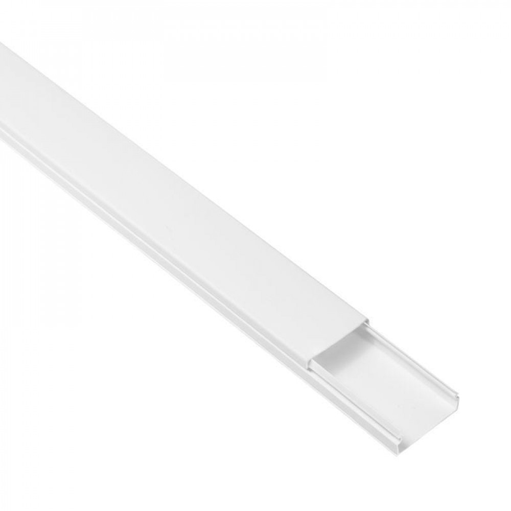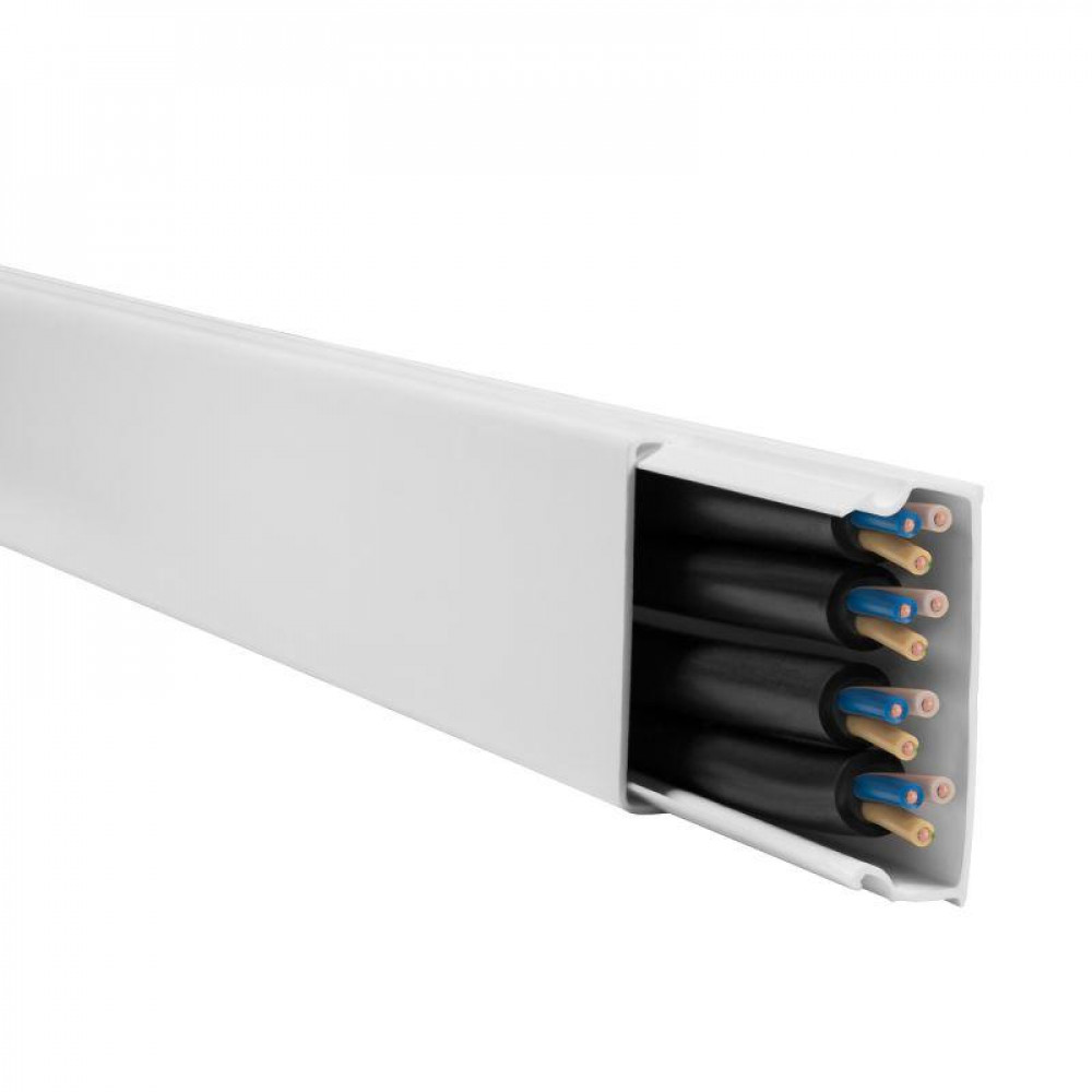 Представляет собой канал для настенного или потолочного монтажа электропроводки. Изготовлен из пластика, белого цвета. Верхняя часть поставляется совместно с продуктом.