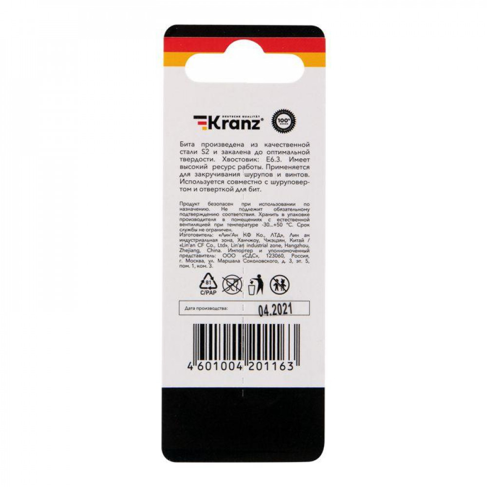 ← Бита PZ 2x50 мм для шуруповерта сталь S2 KR-12-6322