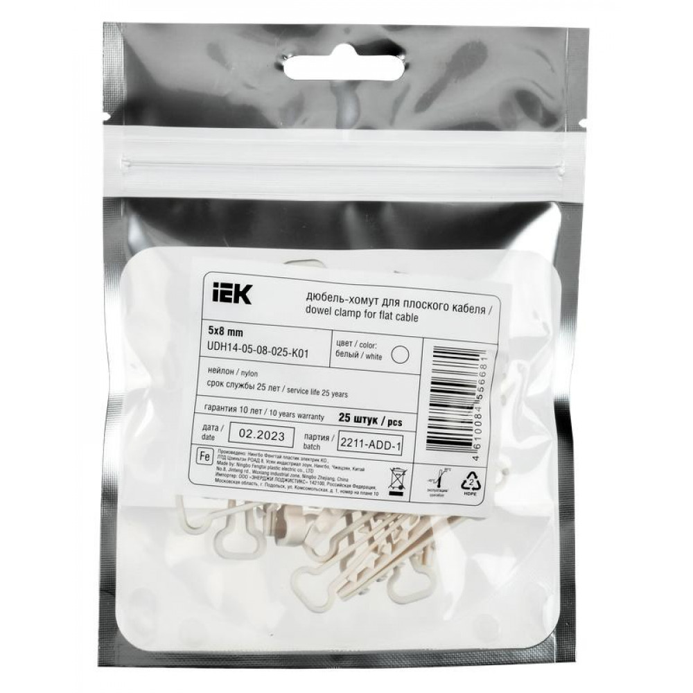 Описание Дюбель-хомут 5х8мм для плоского кабеля нейлон бел. (уп.25шт) UDH14-05-08-025-K01