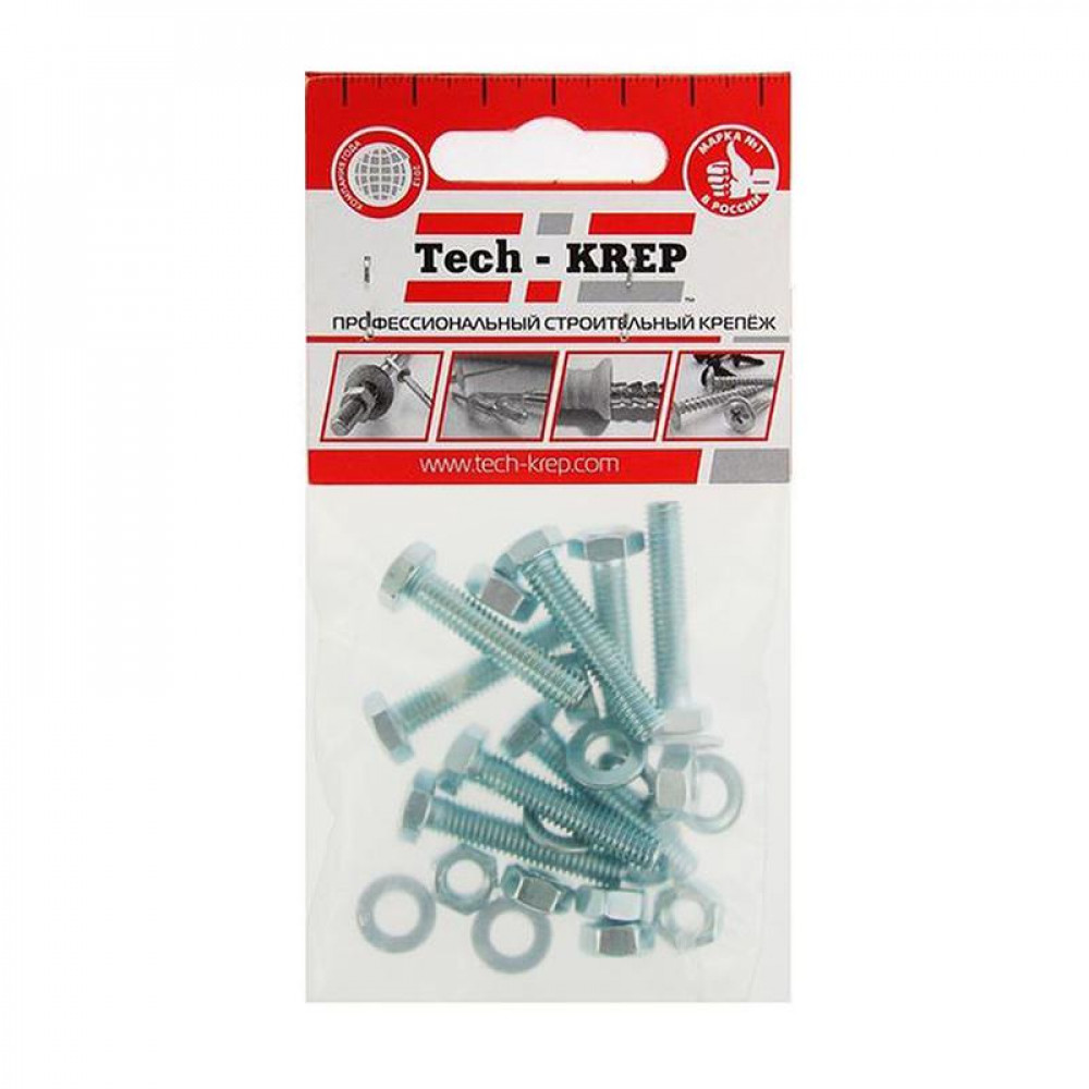 Болт с шестигранной головкой М6х30 DIN 933 класс прочн. 8.8 с гайкой и шайбой оцинк. пакет (уп.8шт) 114051