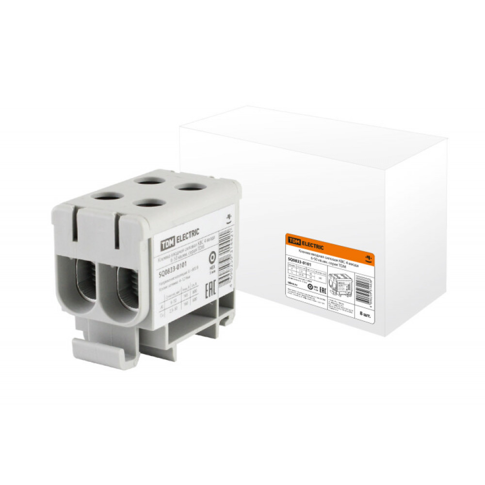 Клемма вводная силовая КВС 4 ввода 6-50 кв.мм. серая SQ0833-0101, Клемма на DIN-рейку